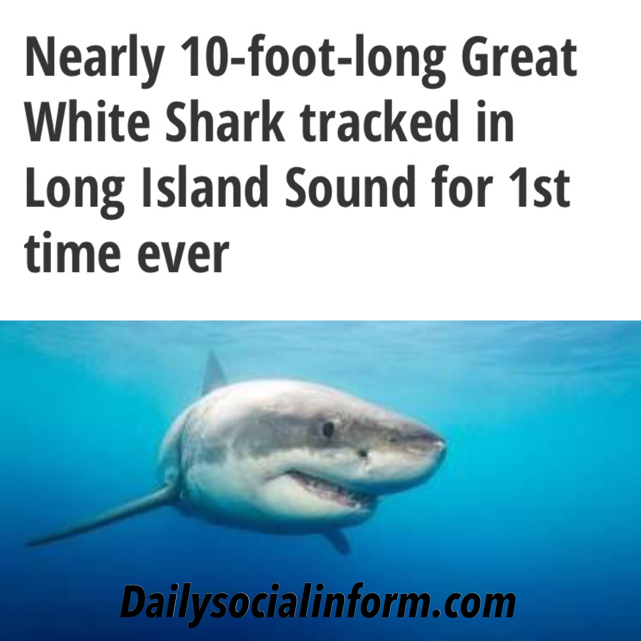 A great white shark was tracked by an ocean data group while swimming in the Long Island Sound on Monday. The notorious shark named Cabot, is 9 feet, 8 inches long and the first known great white spotted in the area off the coast of Connecticut, according to the research group OCEARCH. 👀 #dailysocialinform #dsi #DSI #sharks #shark #greatwhiteshark #ocean #water #oceanwaters
