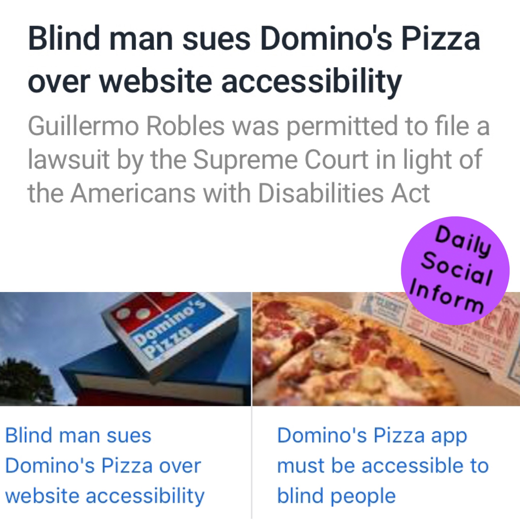 Daily News… A man sues domino’s pizza 🍕 for not being able to use their website to order his food.