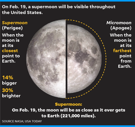 February’s full moon called “snow moon” is a result of the heavy snowfall that often occurs at this time of month. Tonight the super snow moon will appear to be the biggest and brightest full moon to light up the sky of 2019. The moon will look significantly larger than normal because it will be near the closest distance to Earth during its orbit around the planet. The distance is 221,734 miles from Earth during the super snow moon, according to EarthSky the average distance between Earth and the Moon is 238,855 miles.